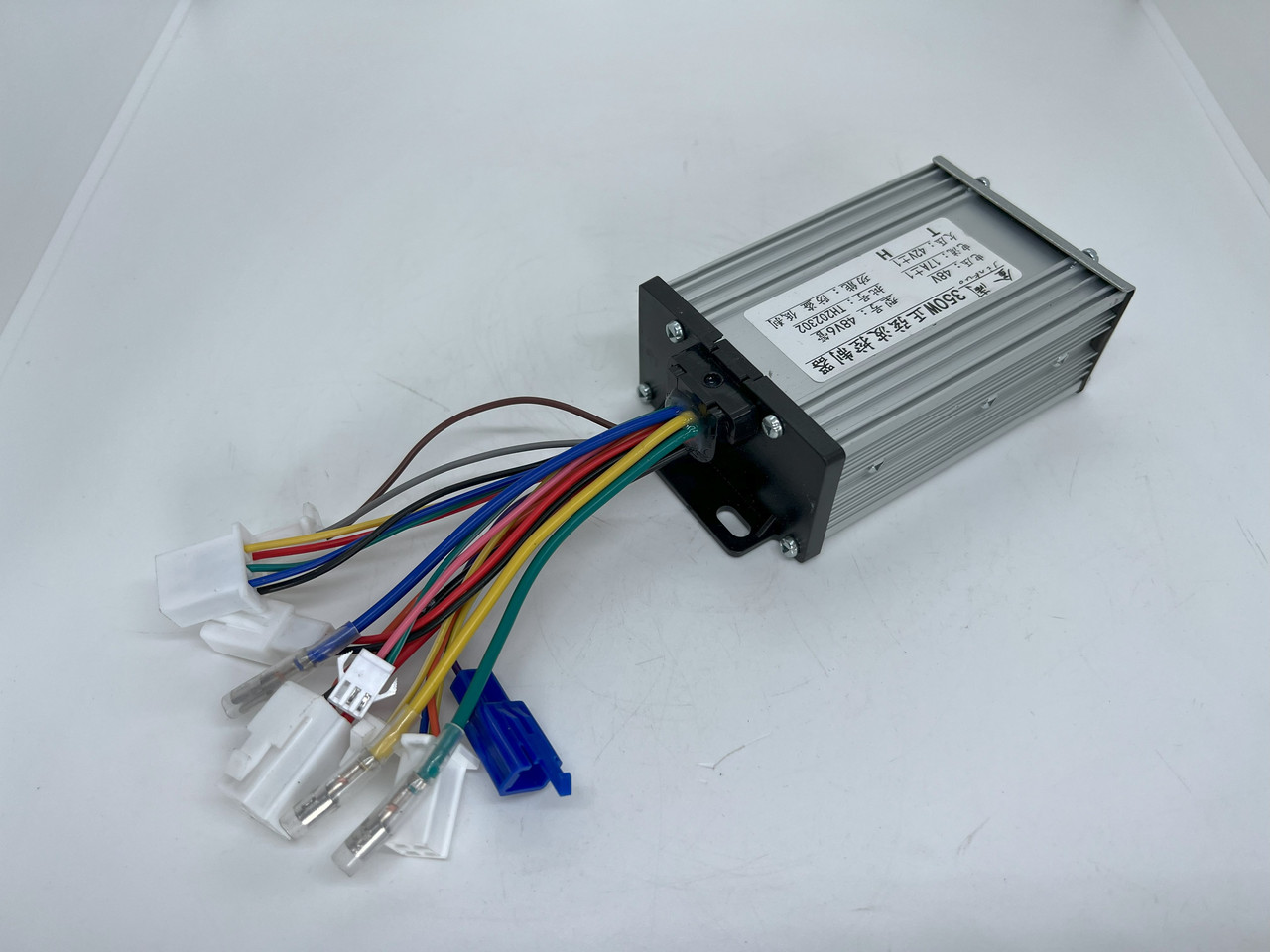 Виходу з контролера на мотор-колесо: із трьома окремими силовими проводами (жовтий, зелений, синій) та роз'ємом на датчики холу.